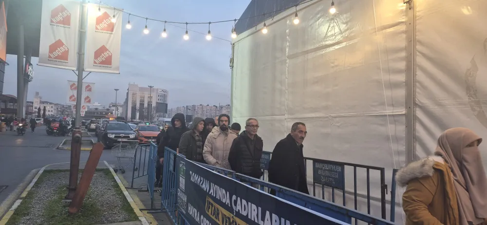 Bahçelievler Belediyesi’nin kurduğu iftar çadırında Mart ayının ilk iftarı yapıldı. Yüzlerce vatandaş, iftara yetişemeyenlerle birlikte hizmetten yararlandı