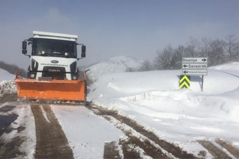Bursa Büyükşehir Belediyesi ekipleri, 17 ilçedeki karla mücadele çalışmaları kapsamında son 24 saat içinde kapanan 276 mahalle yolunu ulaşıma açtı.
