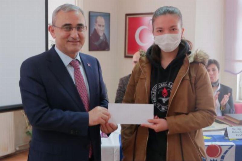 Yapılan konuşmaların ardından programa katılan Belediye Başkanı Prof. Dr. Alim Işık, 2021-2022 senesinde en fazla kitap okuyan, İlkokul düzeyinde Evliya Çelebi ilkokulundan Aslınur Çıracı, orta öğretim düzeyinde Şule Mete Tetik İmam Hatip Ortaokulundan Mustafa Kayra Durmaz ve lise düzeyinde Kılıçarslan Lisesinden Ummahan Sarı’ya ödüllerini verdi.