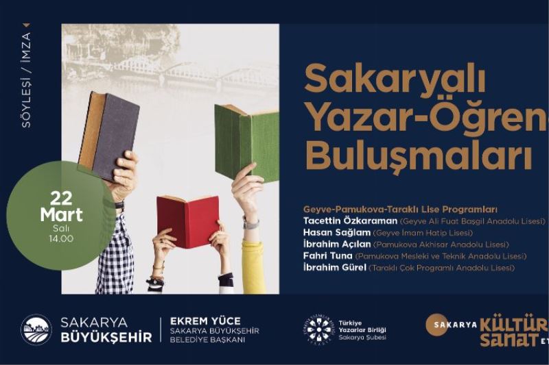 Sakarya Büyükşehir Belediyesi tarafında her ay düzenlenen kültür sanat etkinlikleri Geyve, Pamukova ve Taraklı’da bulunan lise programları ile devam edecek. Söyleşi-imza etkinliği saat 14.00’da başlayacak.
