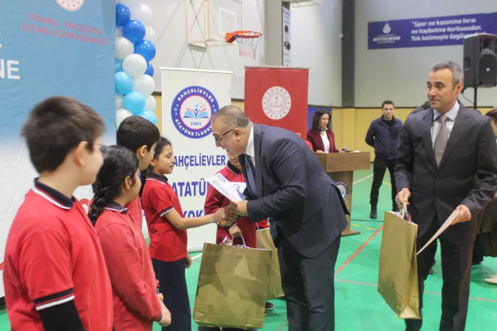 İlk yarı yılda dereceye giren öğrencilere karneleri Bahçelievler Kaymakamı Dr. Mehmet Boztepe tarafından takdim etti. Bahçelievler İlçe Milli Eğitim Müdürü Murat Karabulut, emekliye ayrılan Kumport Ortaokulu öğretmenlerinden Mahmut Dural’a, eğitim camiasına verdiği emeklerinden dolayı bir plaket sundu. Öğrencilerin hazırladığı gösterilerle renklenen tören, alkışlar eşliğinde devam etti. Sergilenen performanslar katılımcılardan tam not aldı. Program, toplu hatıra fotoğrafı çekimiyle sona erdi. Bahçelievler Atatürk İlkokulu’nda karne günü hem sevinç hem de vefa duygusunun bir arada yaşandığı özel bir gün olarak hafızalara kazındı.